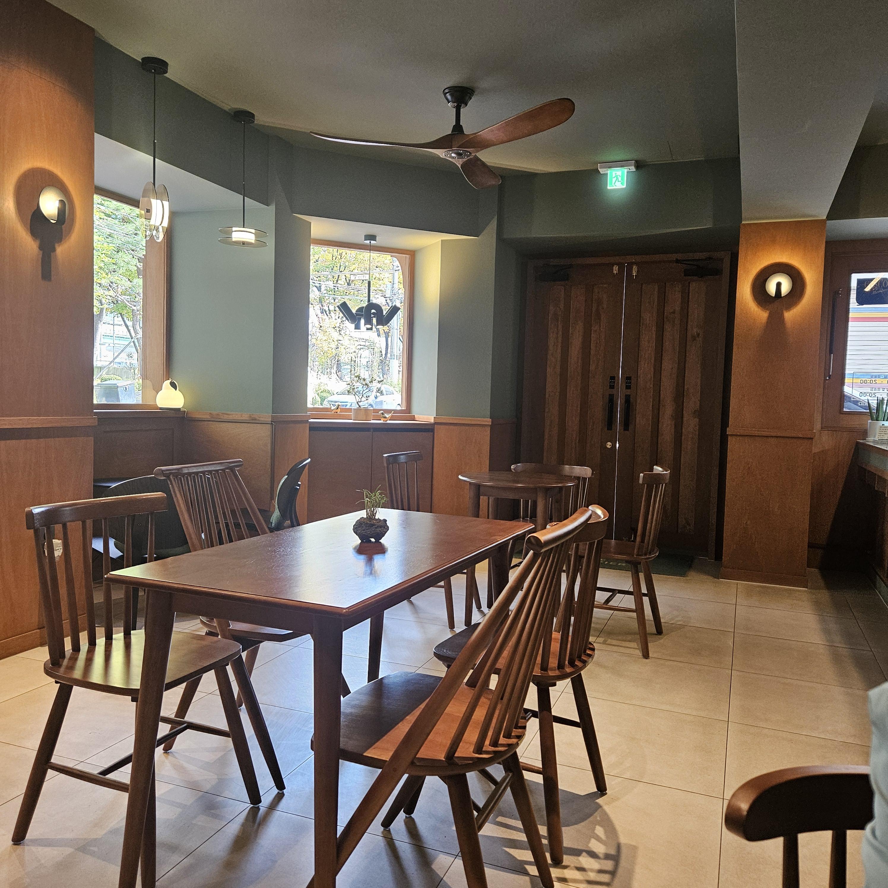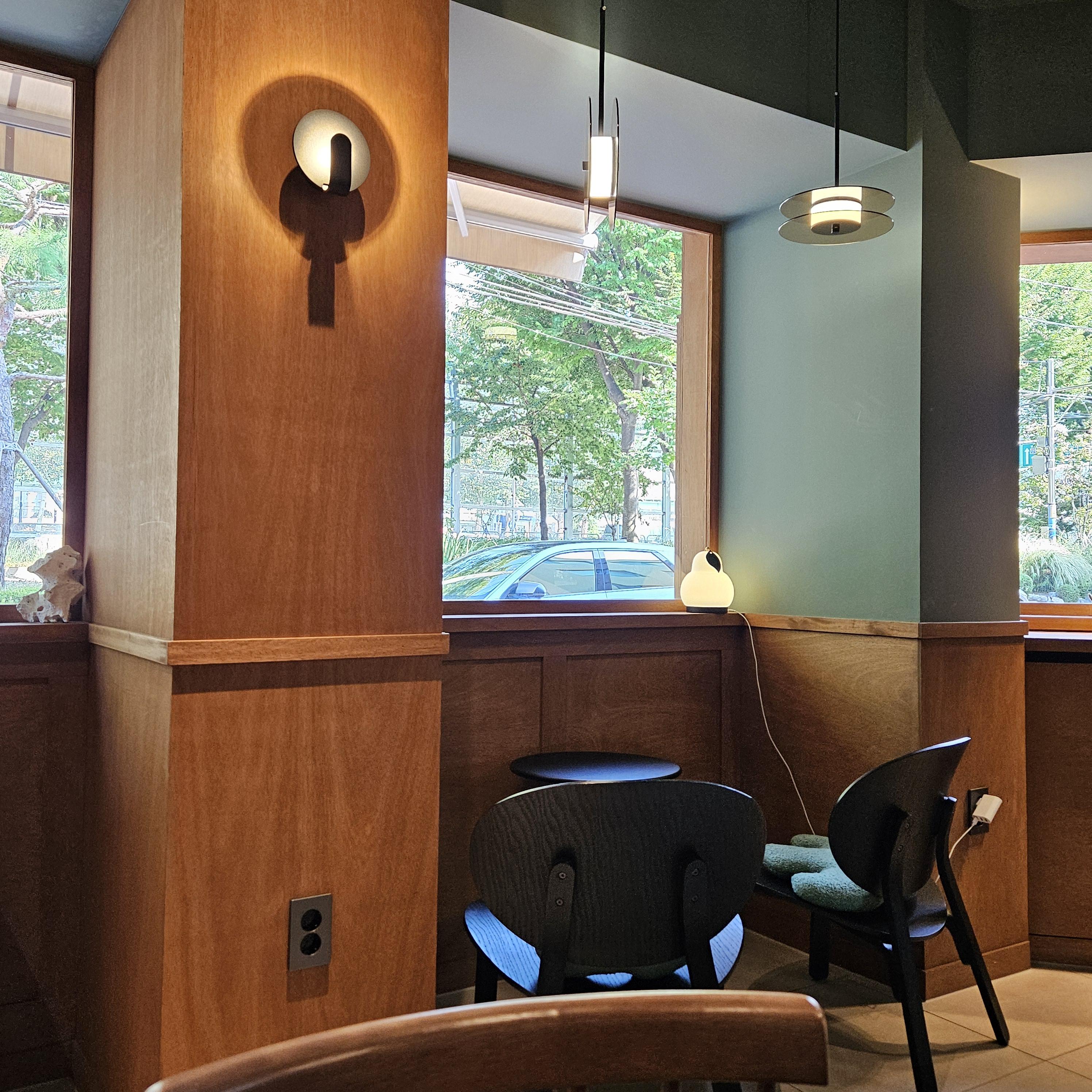 전체적으로 따뜻한 우드톤과 은은한 조명의 인테리어인 금천구청역 독산동 카페 얼로스터리입니다.