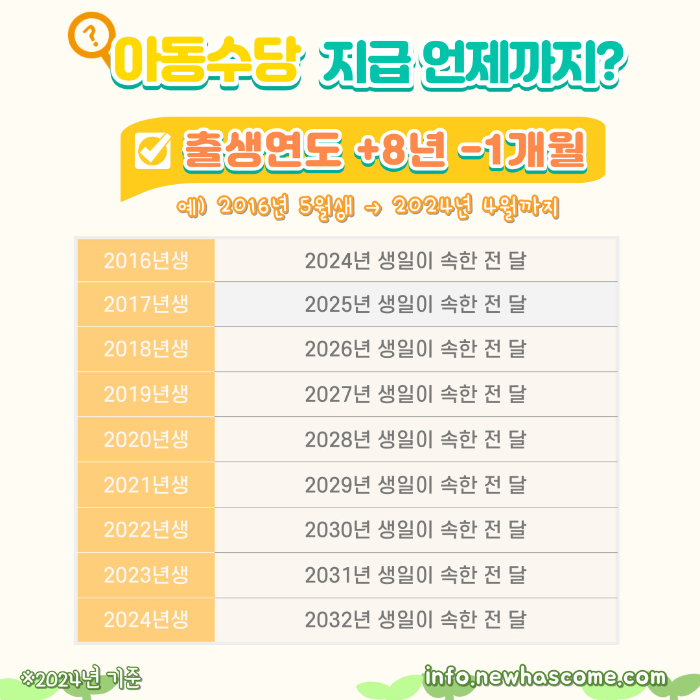 우리 아이가 2016년 5월생이다?! 그렇다면 2024년 4월까지 아동수당 받을 수 있습니다.